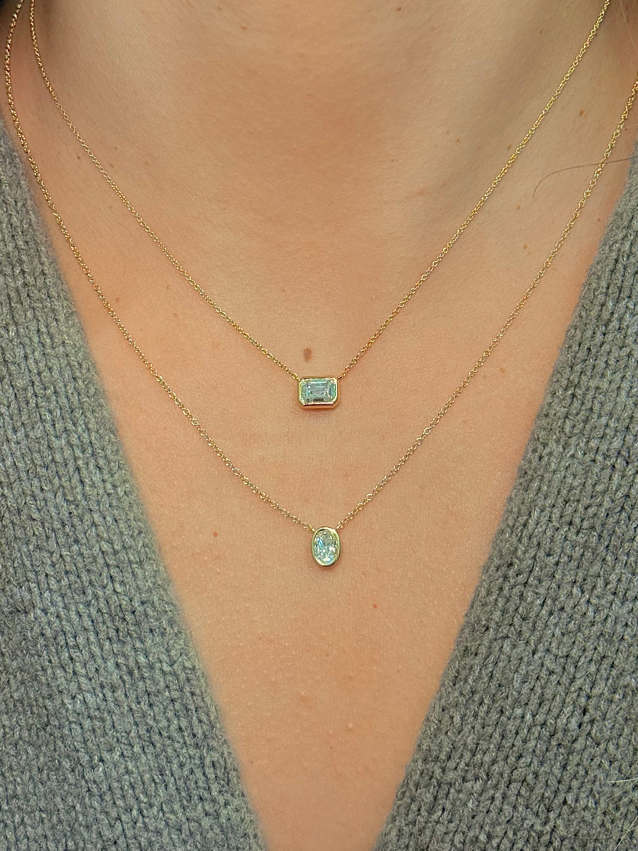 This Gold Lab Grown Emerald Cut Diamond Necklace features a 1ct lab-grown emerald-cut diamond set in 14k Yellow Gold.