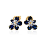 Gold Plated Lab Grown Diamond and Blue Sapphire Flower Earrings