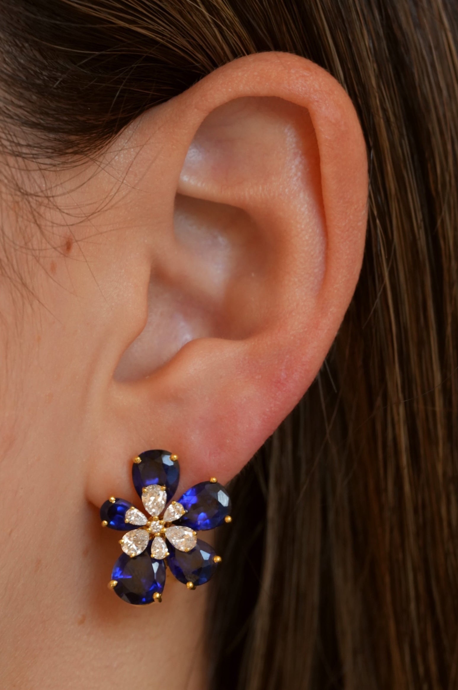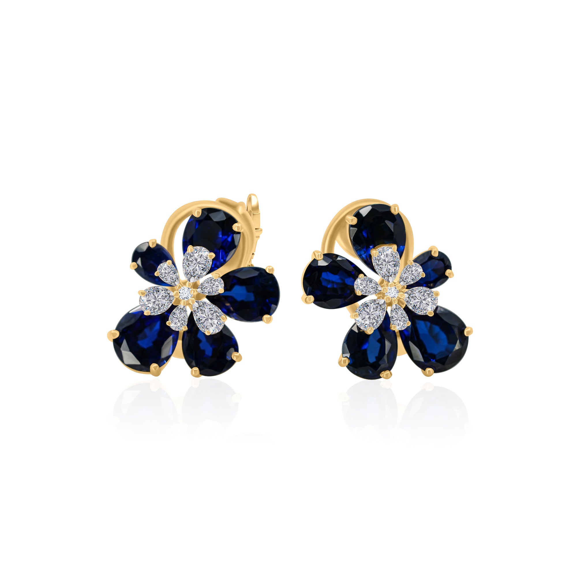 A bold floral silhouette brought to life with deep blue sapphires and sparkling lab-grown diamonds. These statement earrings are crafted in gold-plated sterling silver and designed to add a rich pop of color with refined elegance, perfect for special occasions or elevating everyday looks.