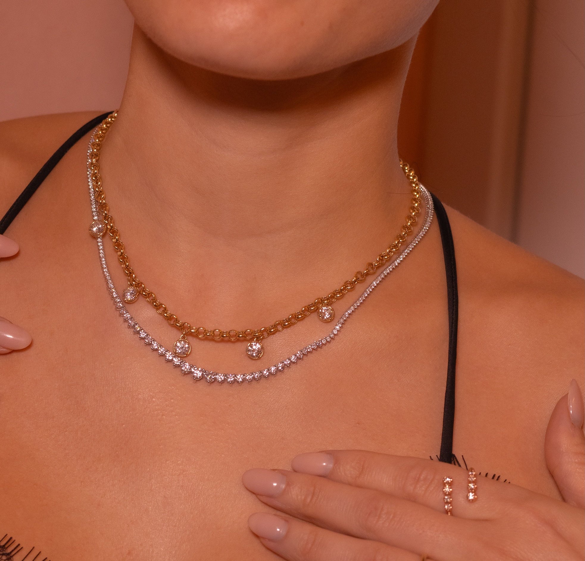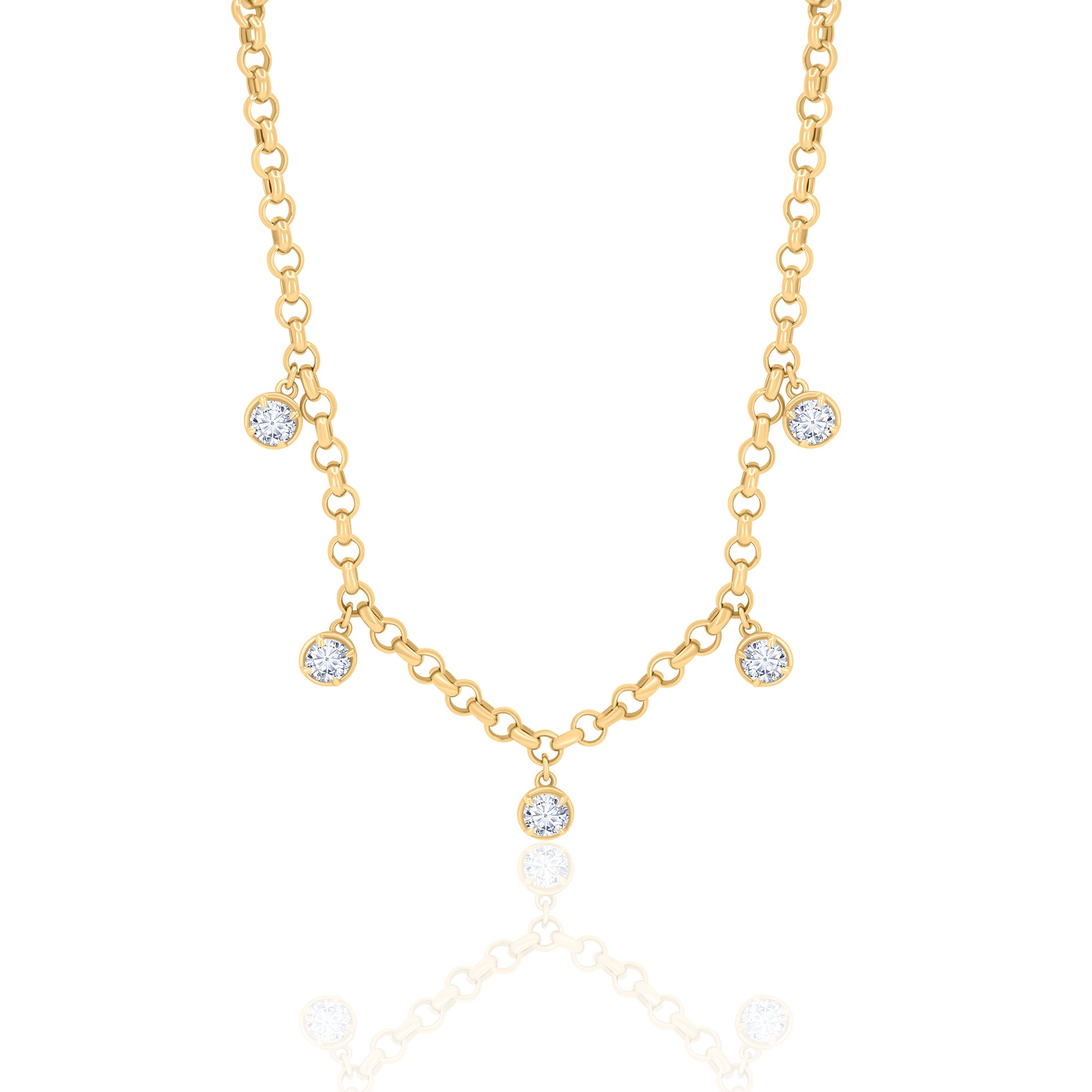 A refined take on everyday sparkle, this delicate drop necklace features round lab-grown diamonds set along a sleek 14k yellow gold link chain. Designed to move beautifully with you, it’s the perfect layering piece, or a subtle statement worn on its own.