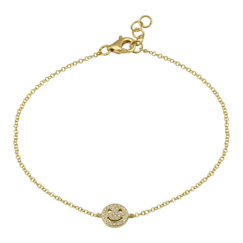 This Gold Diamond Smiley Face Bracelet features diamonds set in 14k Yellow Gold.