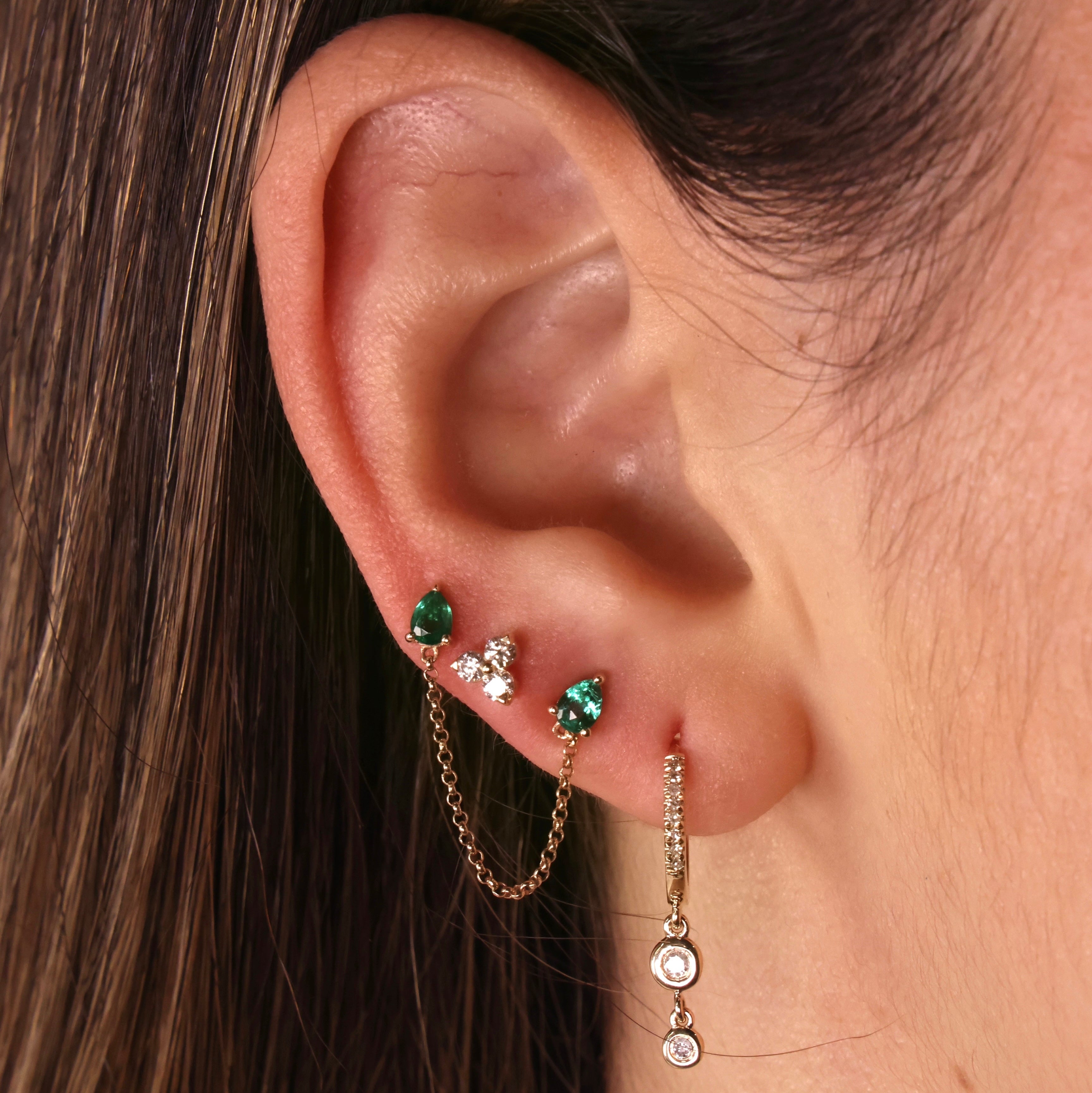 - Design: Classic hoop earring with a contemporary double drop diamond detail.