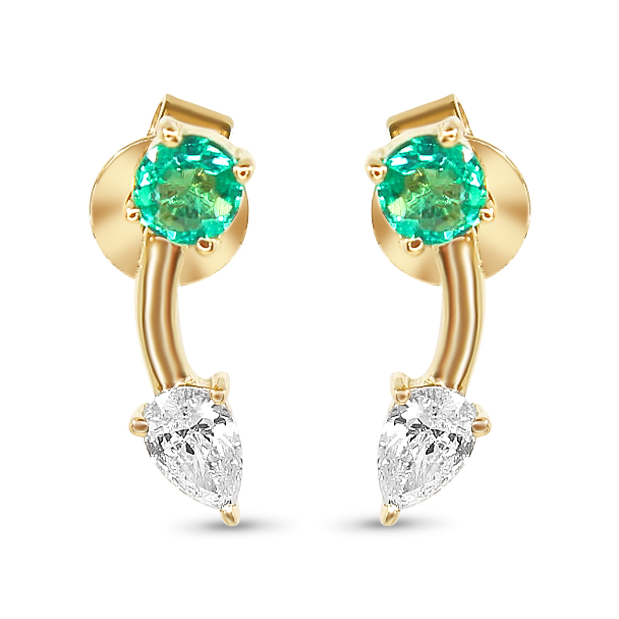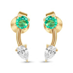 These earrings feature diamonds and emeralds set in 14KT Gold