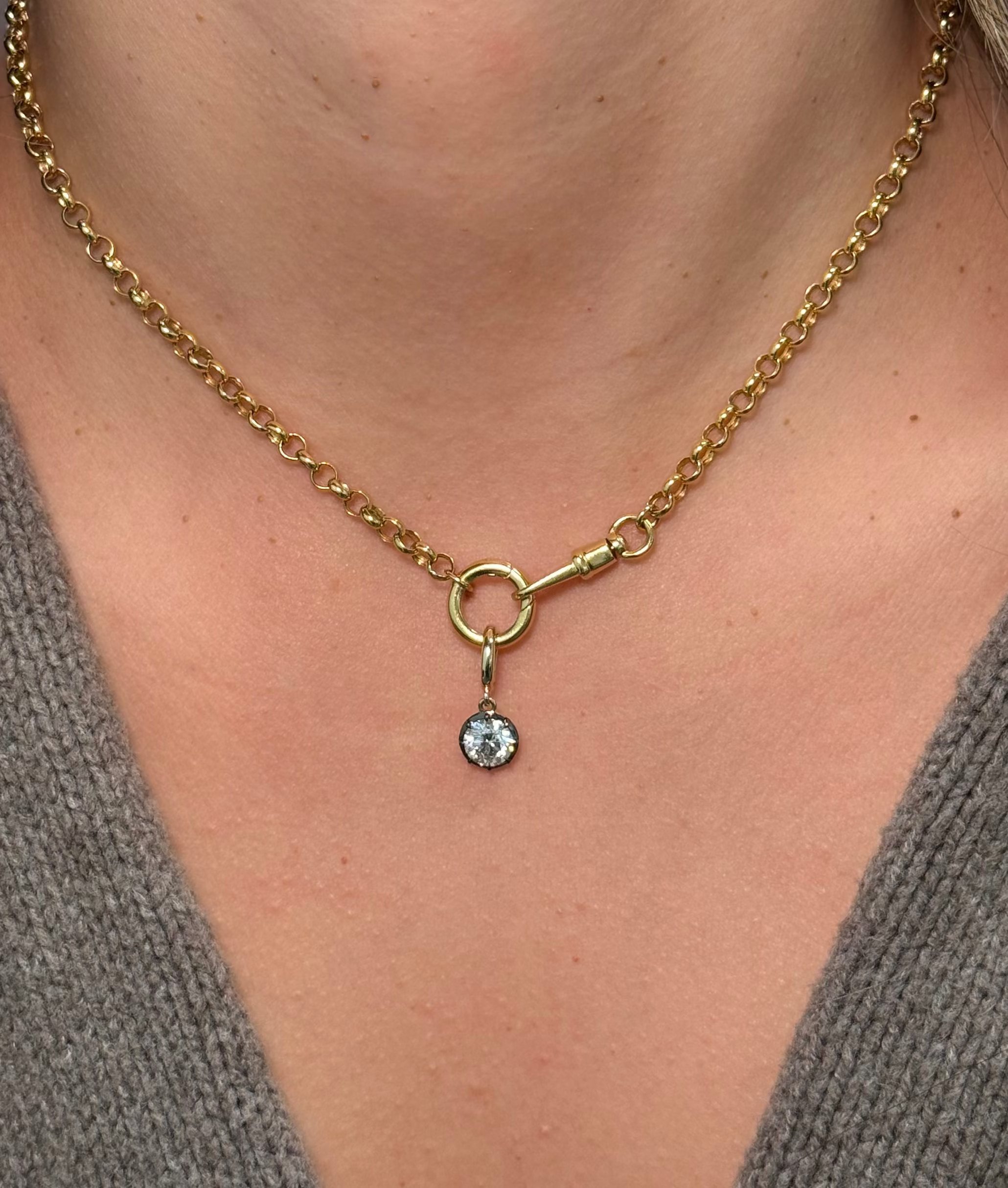 Gold Lab Diamond Round Georgian Pendant