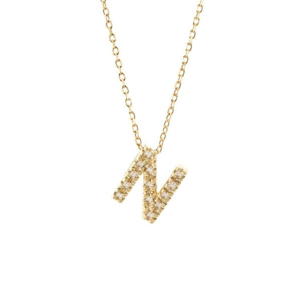 This Gold Pave Diamond Initial Necklace features diamonds set in 14k Yellow Gold.