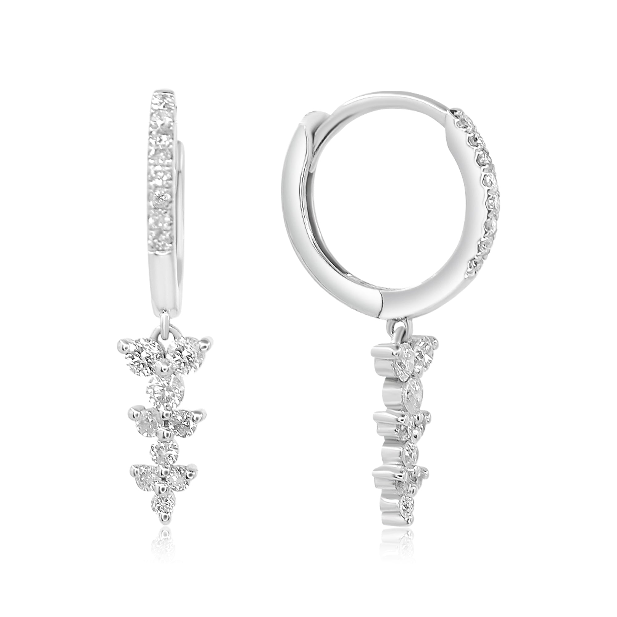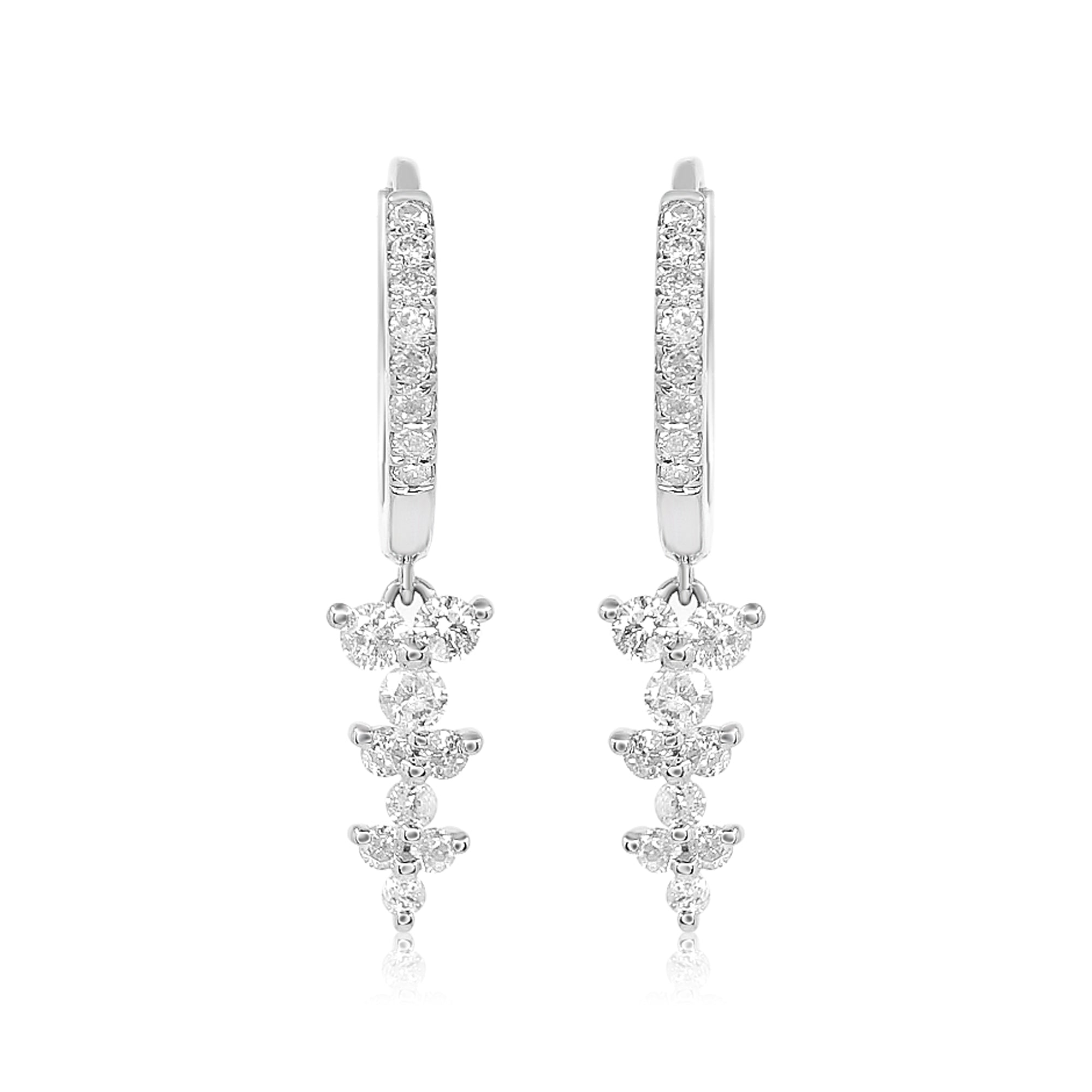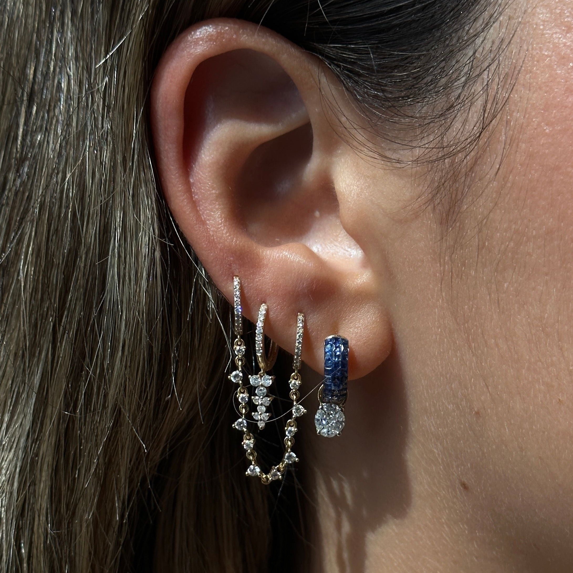 This Gold Triple Trio Diamond Hoop Earring features diamonds set in 14KT Gold. Available to order in yellow, rose, and white gold.
