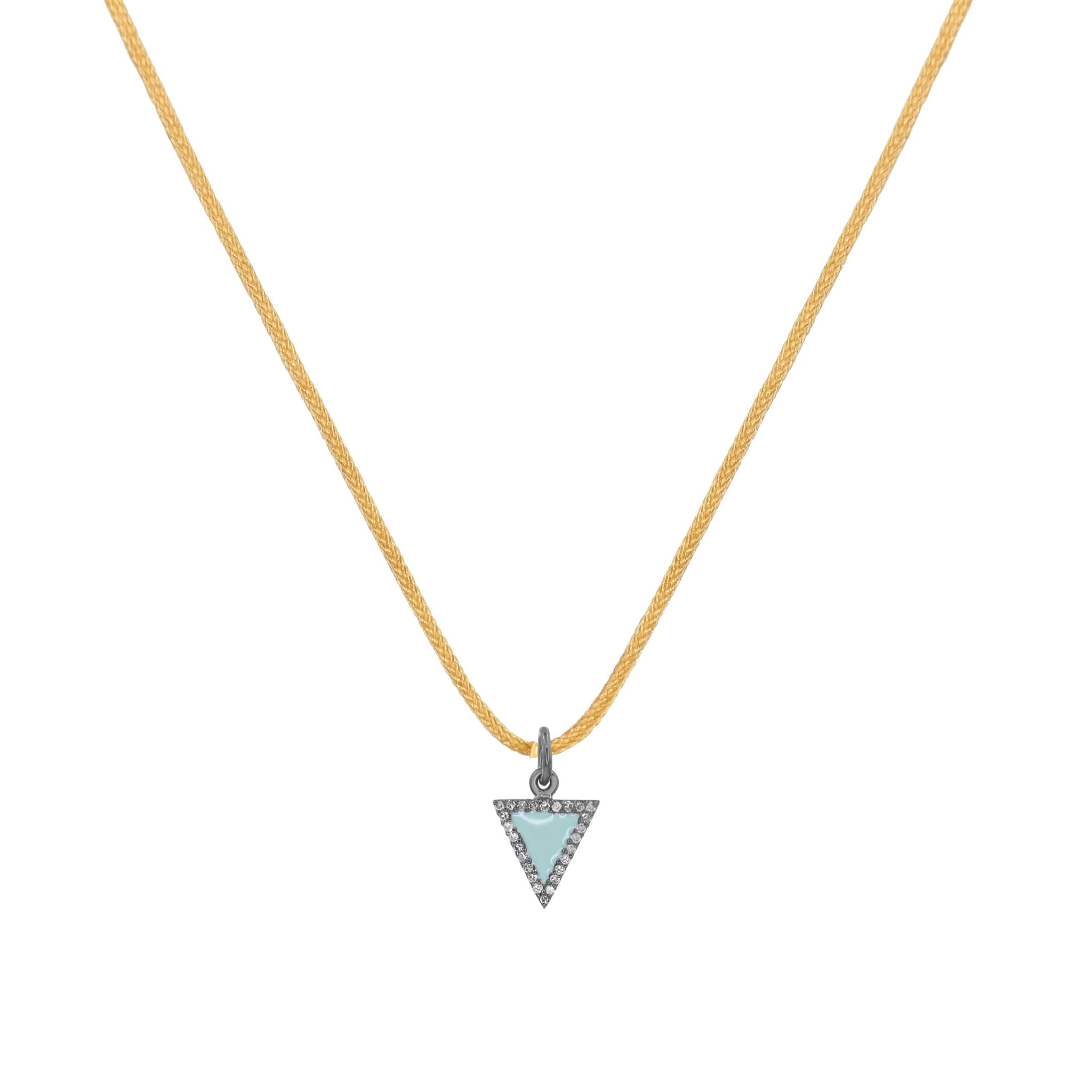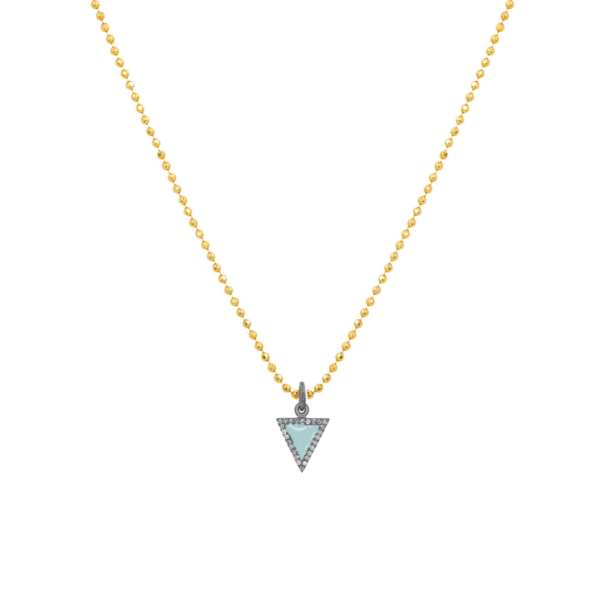 This Sterling Silver Blue Enamel Triangle Charm Pendant features diamonds and enamel set in 14k Sterling Silver