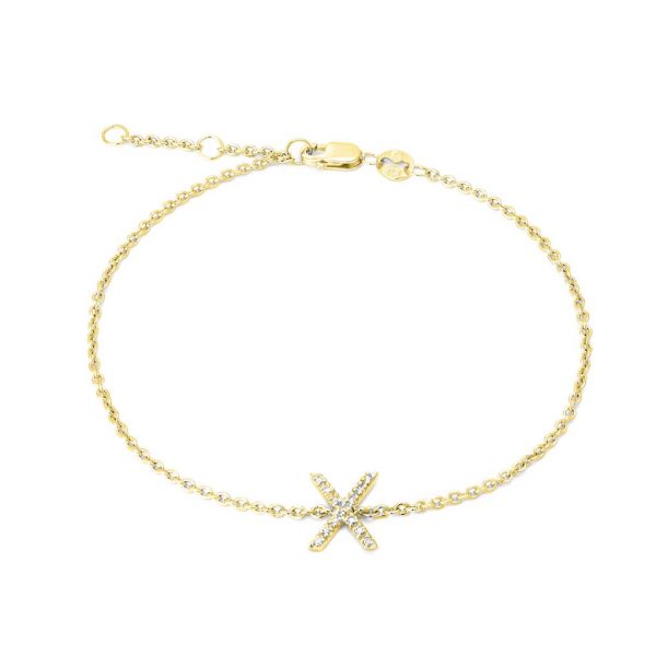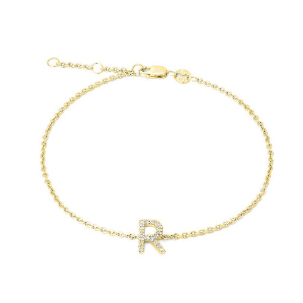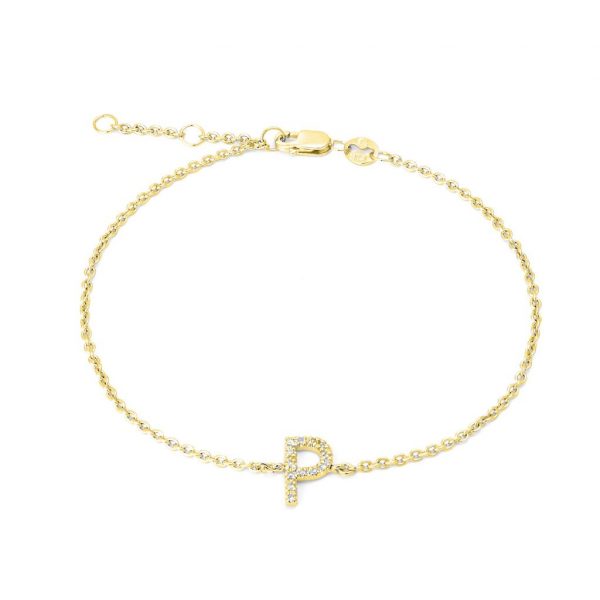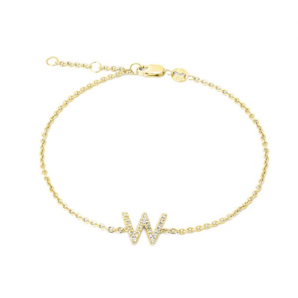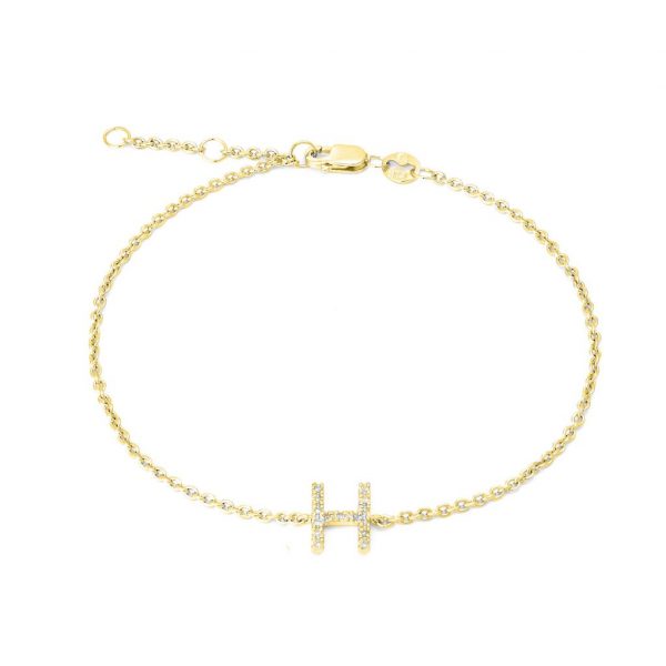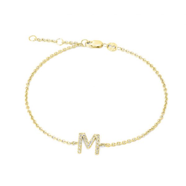 This Silver Diamond Initial Bracelets features diamonds set in Silver, Gold Plated.