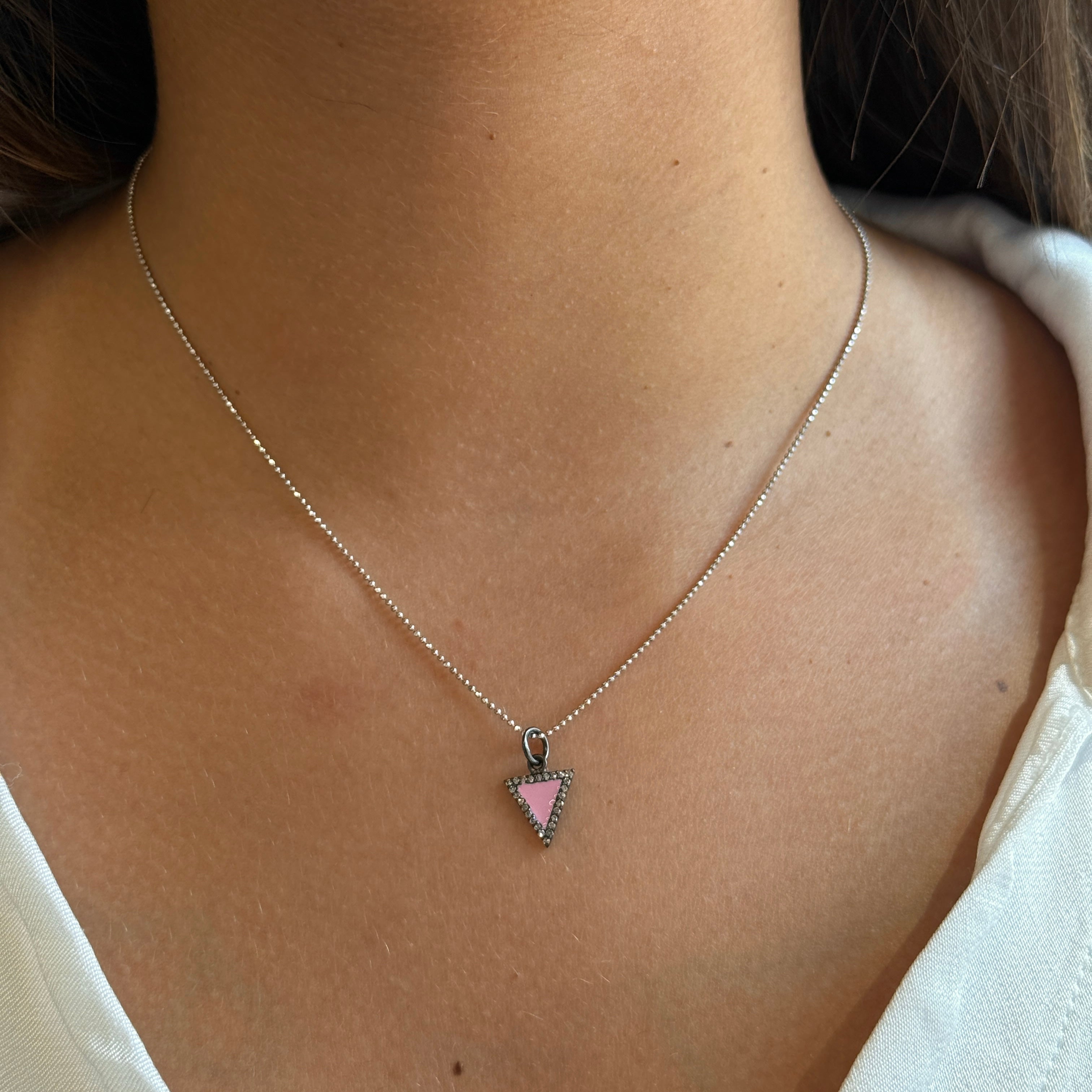 Sterling Silver Pink Enamel Triangle Charm Pendant
