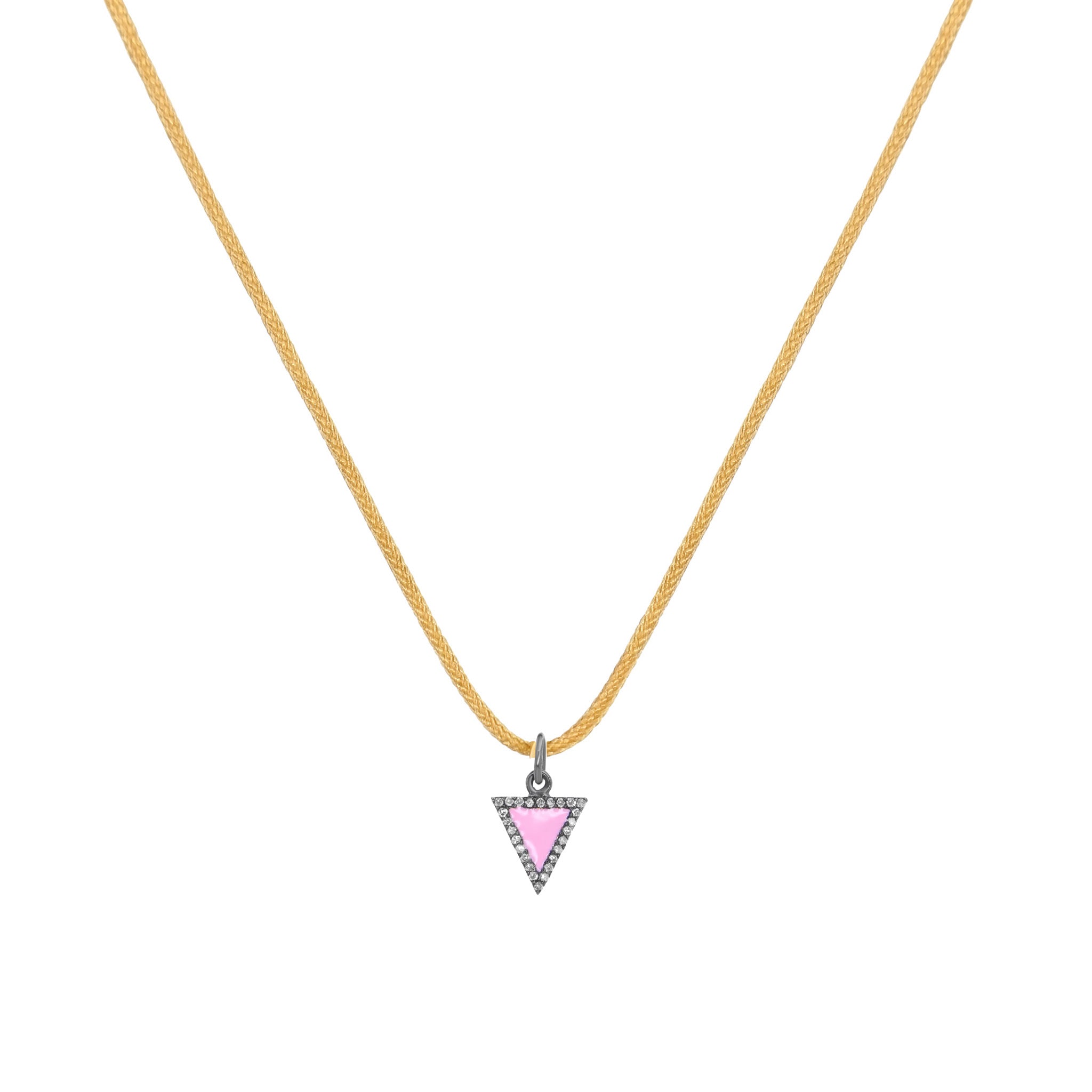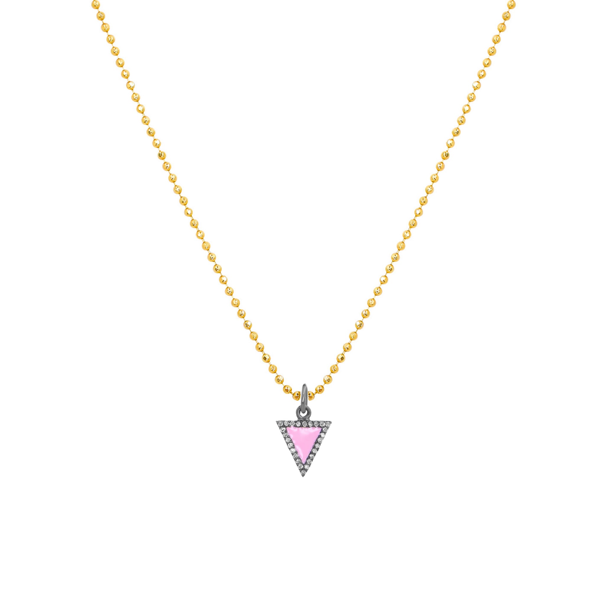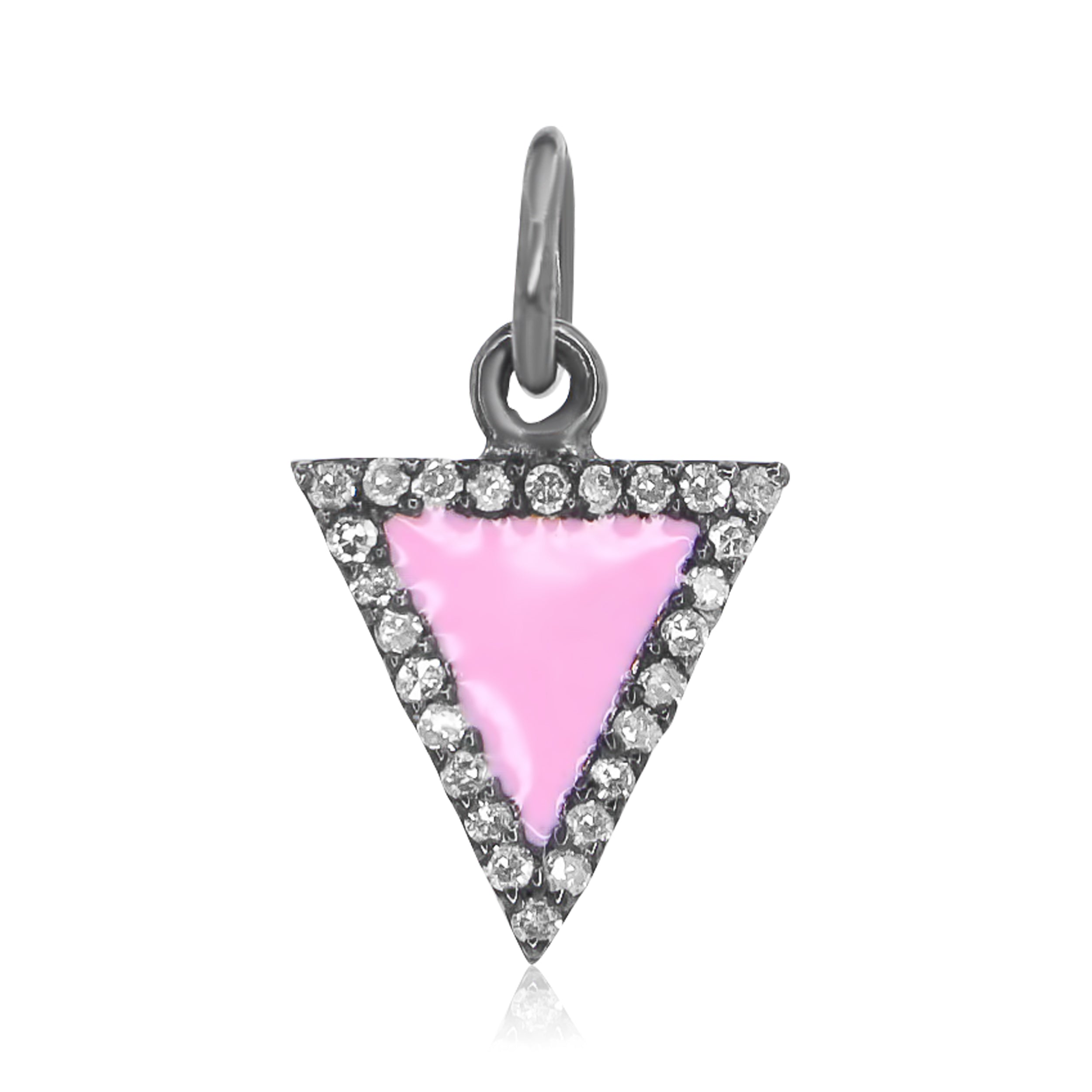 This Sterling Silver Pink Enamel Triangle Charm features diamonds and enamel set in 14k Sterling Silver.